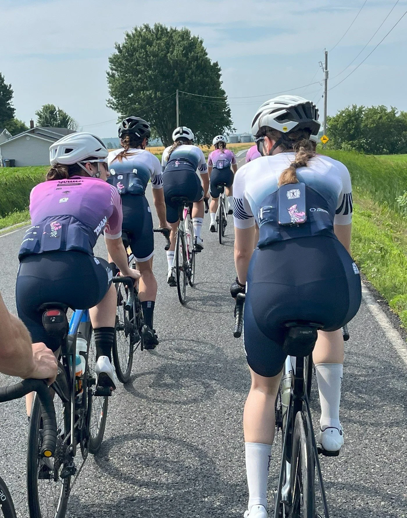 Tu feras partie d’un groupe engagé et motivant, où chacune se responsabilise et progresse dans une ambiance conviviale. L’approche t’amène à t’entraîner de façon structurée, à aimer le processus et à découvrir le plaisir de la compétition, au sein d’une communauté de cyclistes passionnées qui partagent les mêmes valeurs.