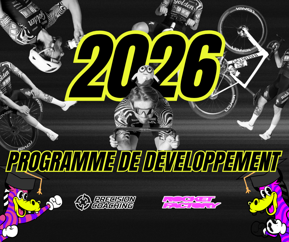 En partenariat avec Rocket Factory, notre programme de développement t’offre un encadrement structuré pour progresser en cyclisme sur route, intégrer les bases de la compétition et t’intégrer dans un groupe cyclistes motivés!
